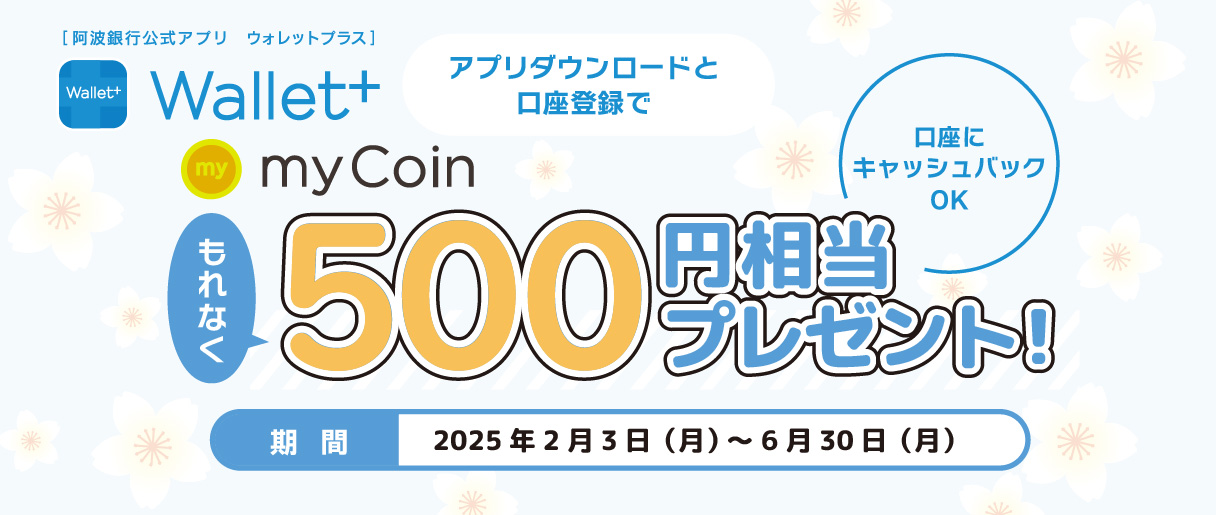 - Wallet+の預金サービスは阿波銀行が提供するサービスであり、預金サービスのご利用には阿波銀行の普通預金口座(個人のみ)の登録が必要です。