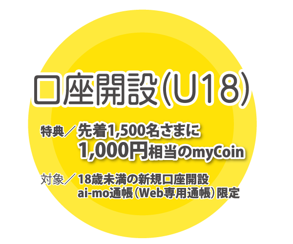 <条件>当行と初めてお取引いただく方のうち、2026年4月1日時点で18歳未満の方。