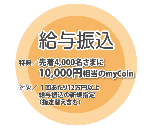 <留意事項>既に給与振込がある方の「勤務先の変更・追加」は対象外となります。特典進呈は先着順とし、同日達成の場合はエントリー順とします。